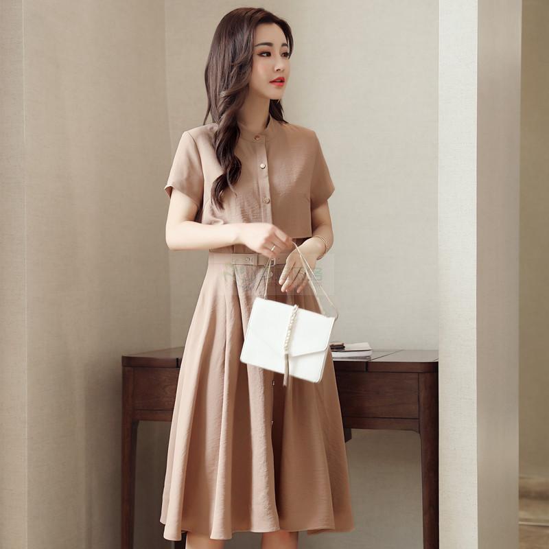 夏季新款韩版女装修身显瘦款A字裙子气质仙春夏装雪纺连衣裙