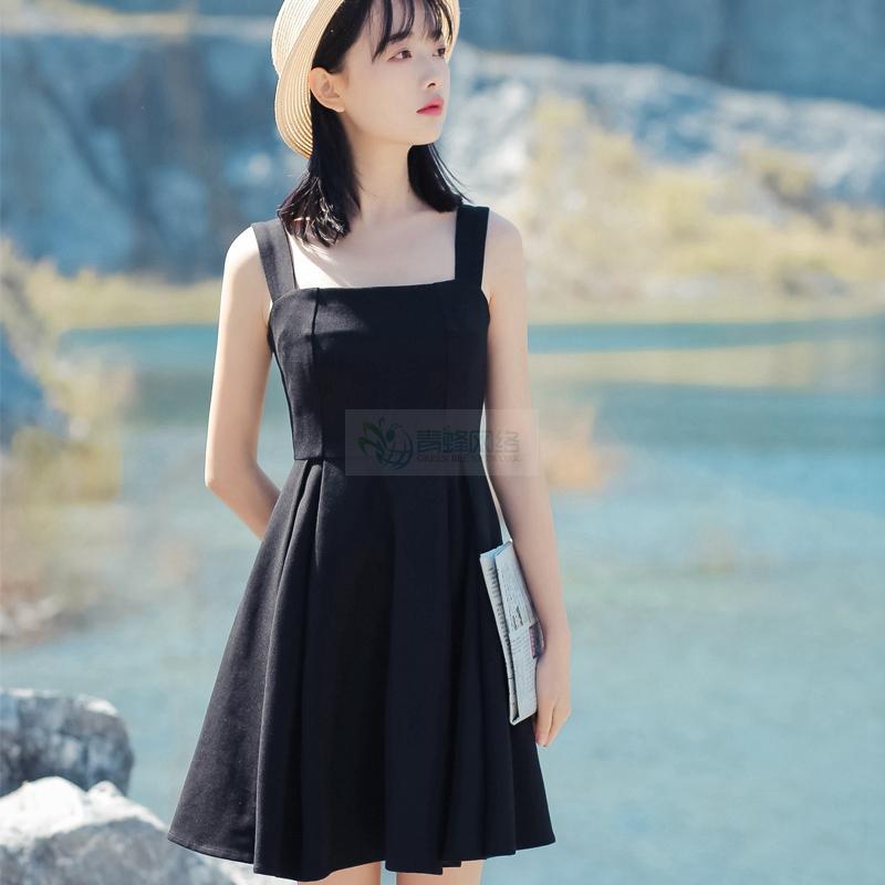 初恋裙复古文艺学生新款韩版小清新小黑裙吊带裙子女连衣裙夏